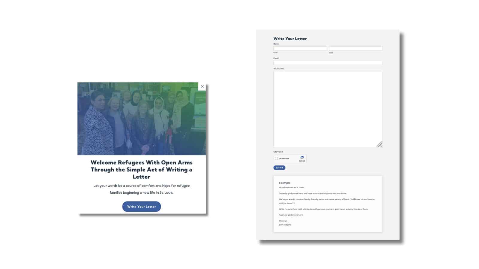 After creating a clear brand message and launching an optimized website to help tell that story, we created a marketing funnel that offers Welcome Letters to website visitors who want to share a letter of encouragement to newly-arriving refugees.